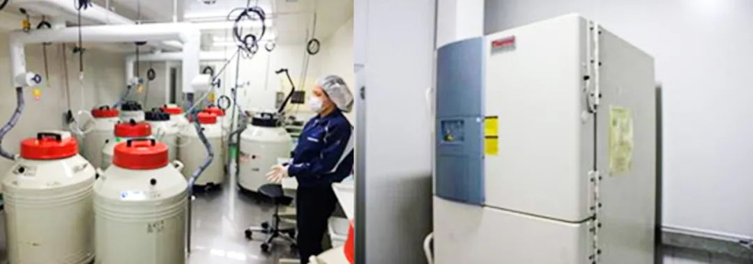 細胞的凍存過程需要一系列程序降溫,一般為4 ℃下存放30min。轉放-20 ℃ 1 h,再轉入-80—-70℃過夜,之后才可以轉移到液氮內(-196℃)。因此儲存區(qū)必須配備冰箱、低溫冰箱、超低溫冰箱和液氮罐等設備。