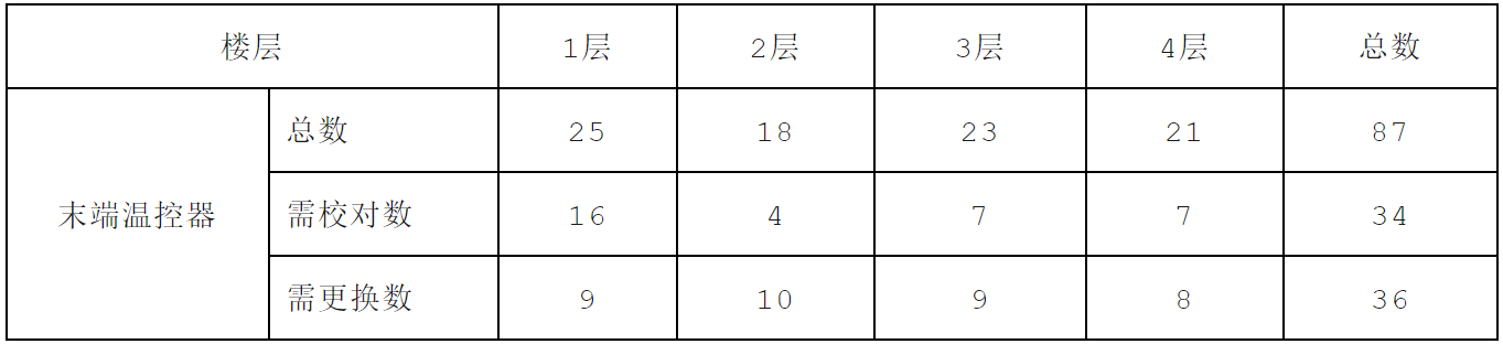 5)房間溫度由氣動溫控器控制,檢測發(fā)現(xiàn)在總數(shù)87個溫控器當中有34個需要校對,36個需要更換.表1給出了溫控器檢測和維修情況。